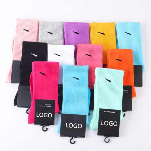 JC Vente en gros Hommes Femmes Logo personnalisé Chaussettes en coton Nouvelle mode Chaussettes d'équipage de couleur unie